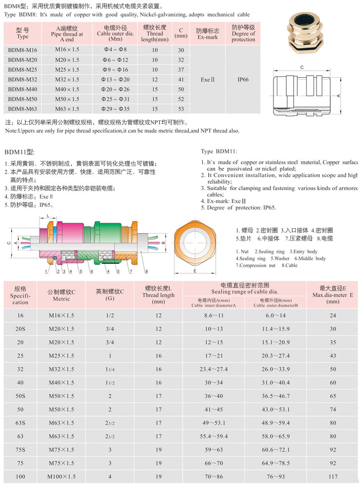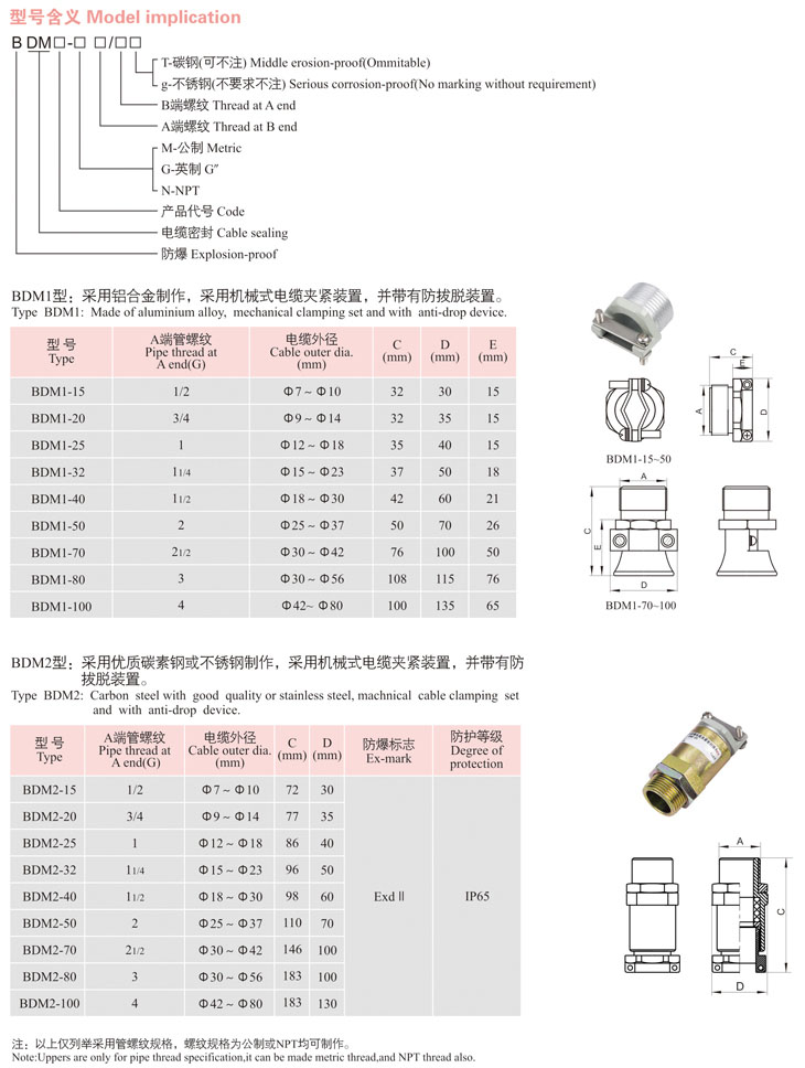 BDM口系列防爆電纜夾緊密封接頭(鎧裝)