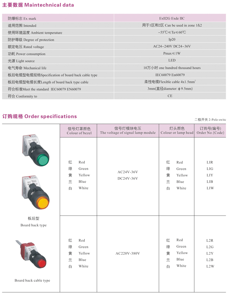 板后型、板后電纜型、防爆防腐按鈕(開關)、信號燈元件