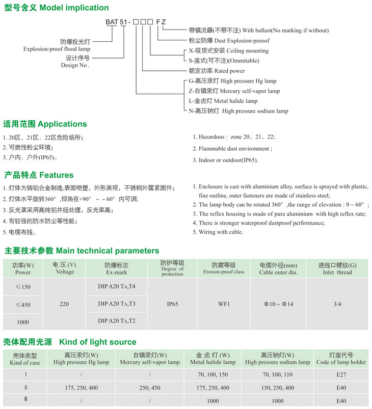 BAT51-口F系列粉塵防爆投光燈