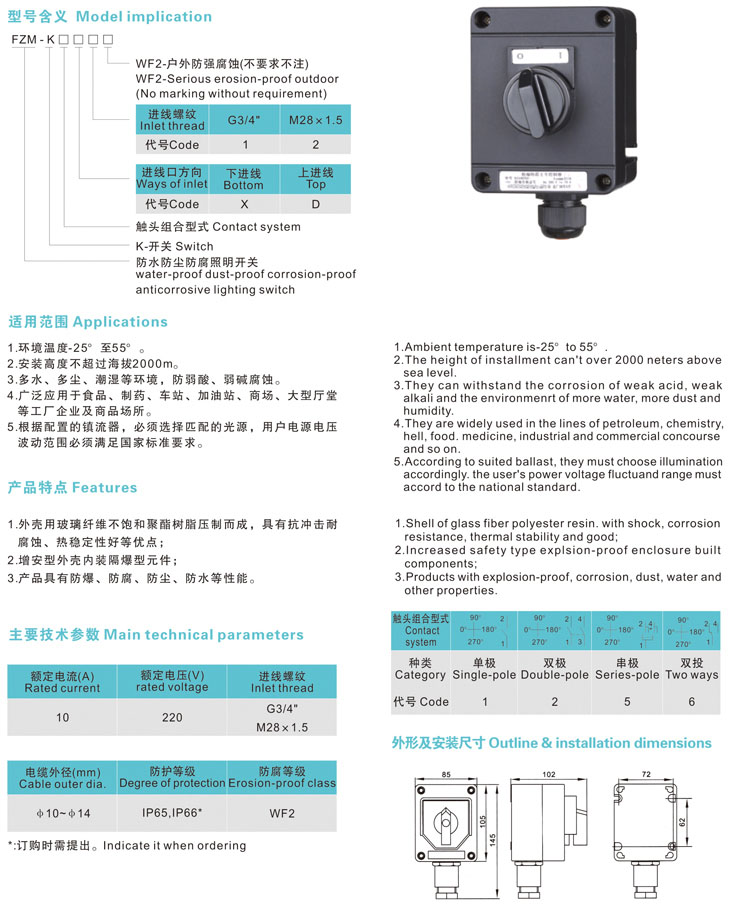 FZM系列防水防塵防腐照明開(kāi)關(guān)