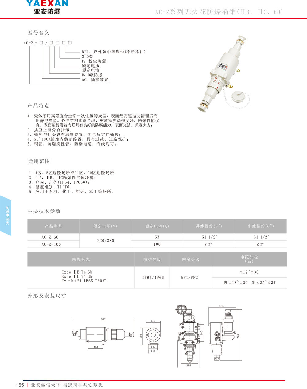 AC-Z系列無(wú)火花防爆插銷(xiāo)(IIB、IIC、 tD)