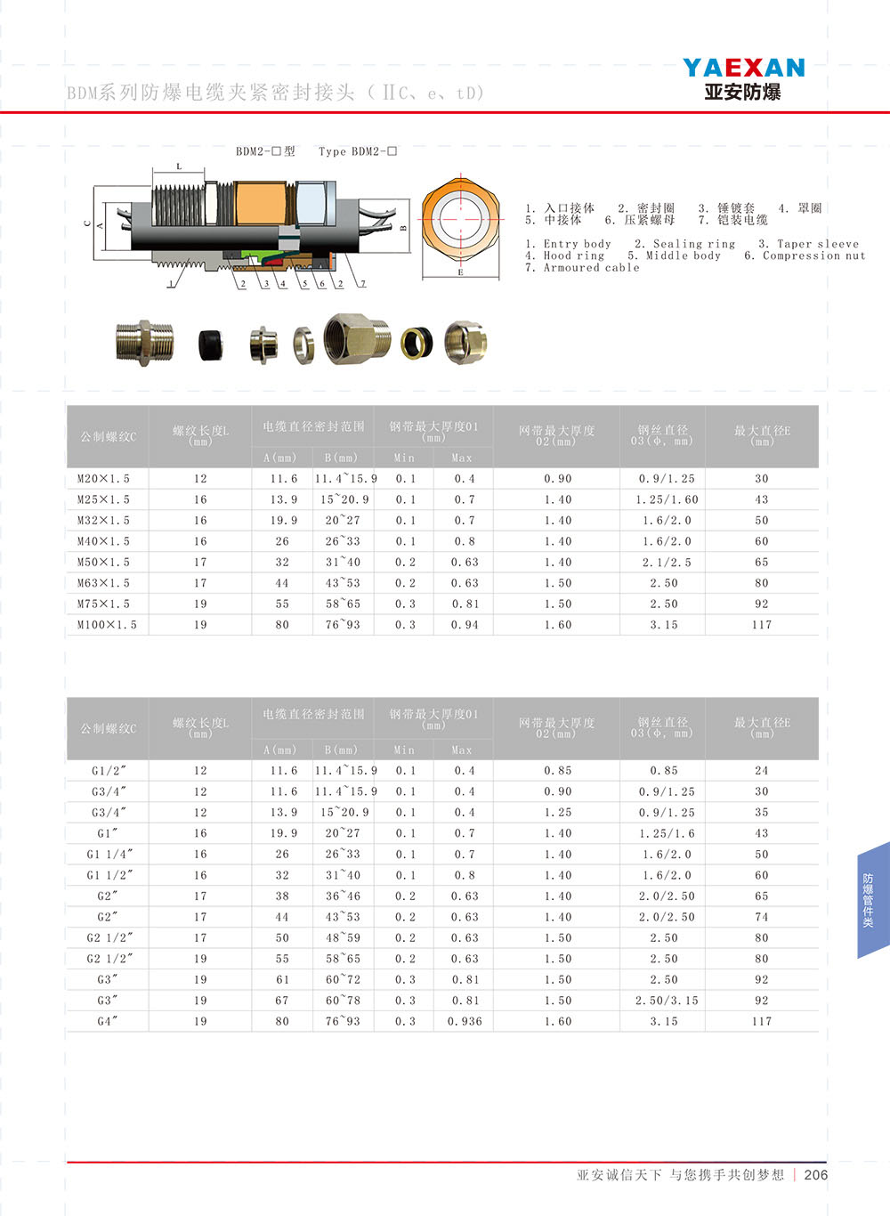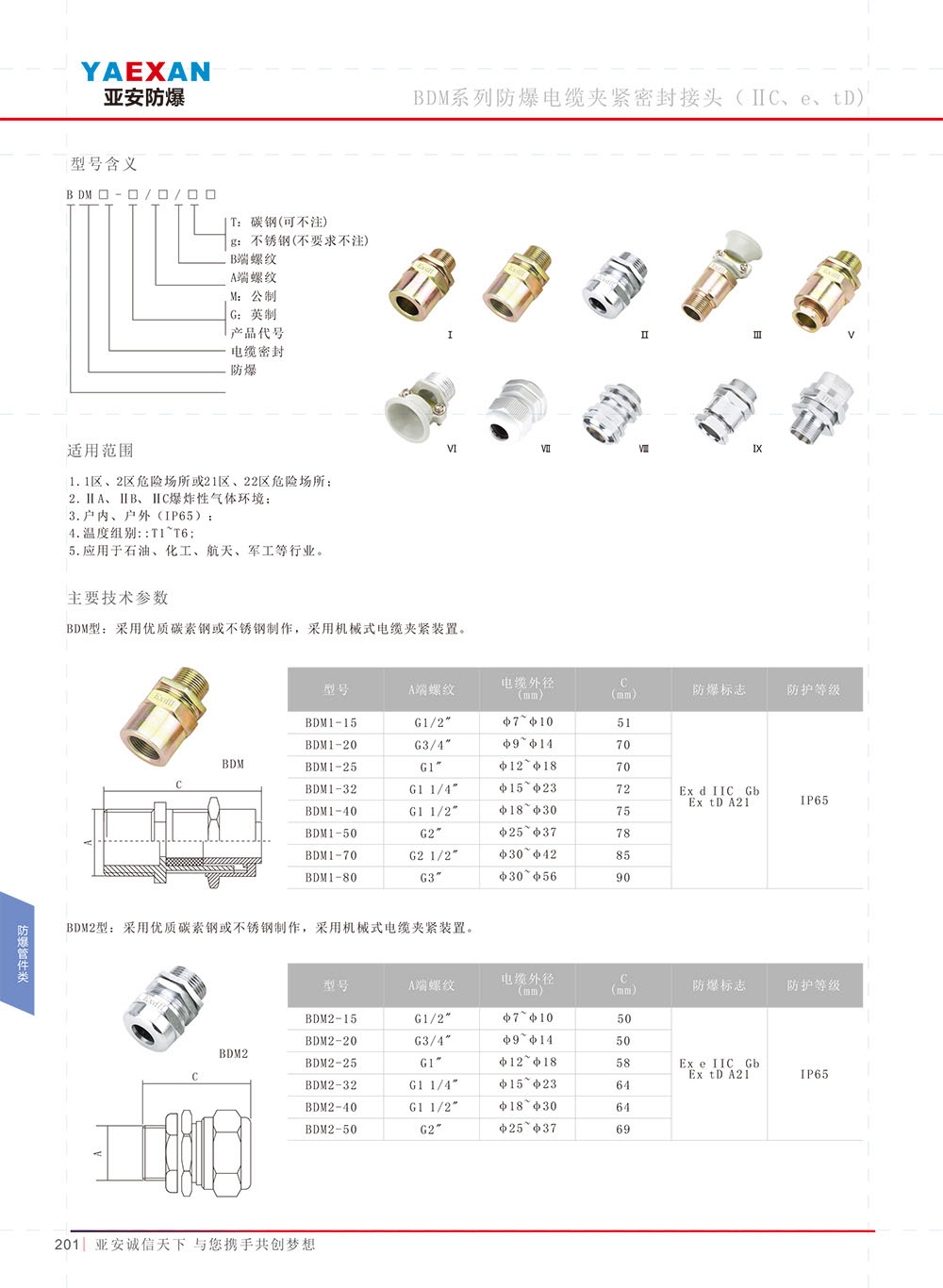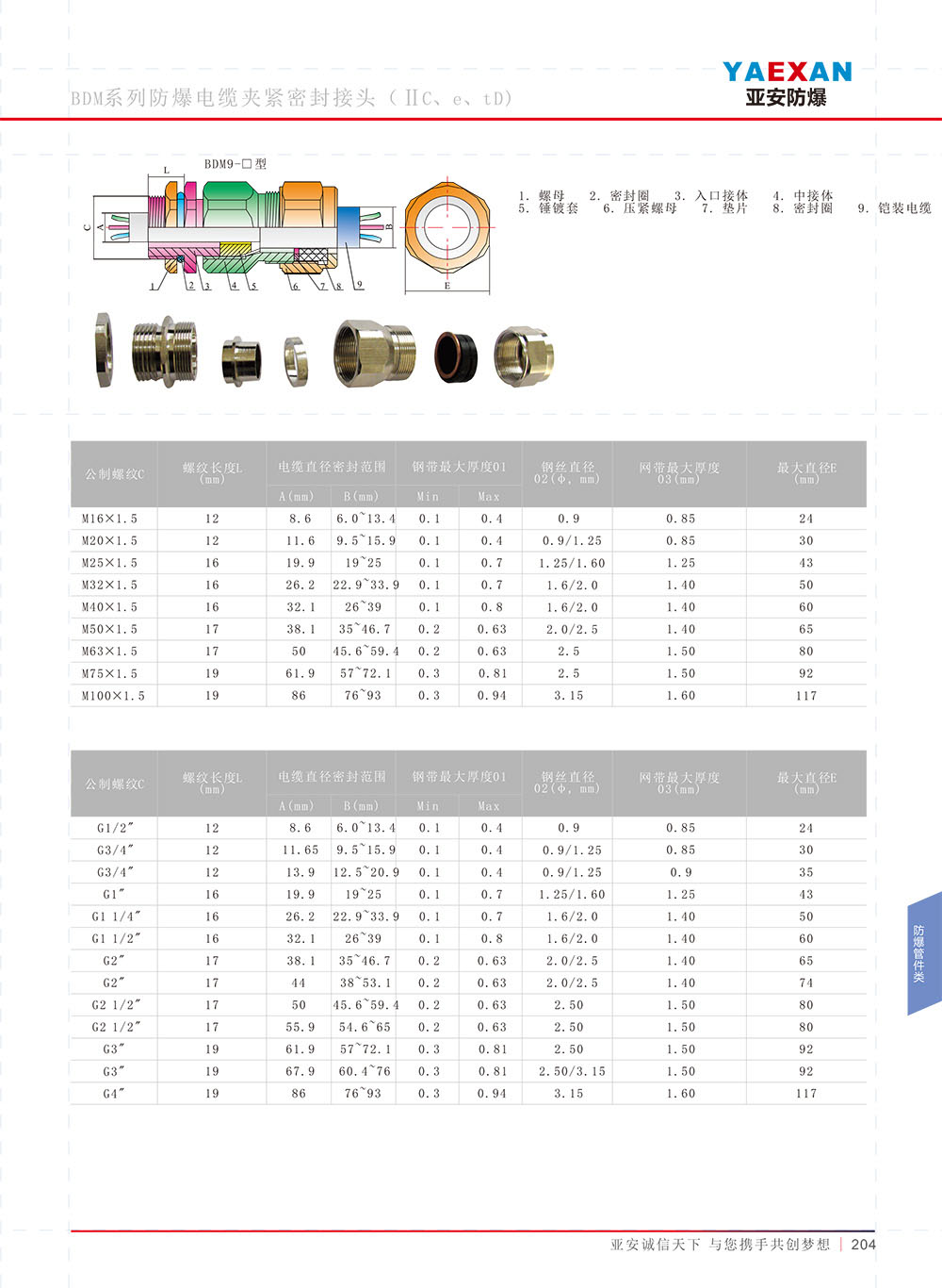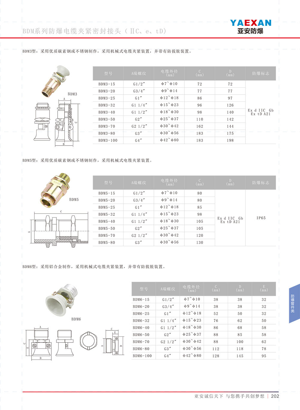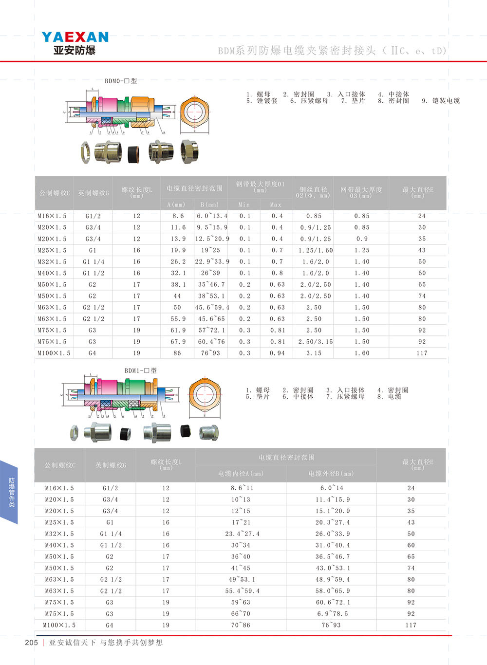 BDM系列防爆電纜夾緊密封接頭( IIC、e、tD)