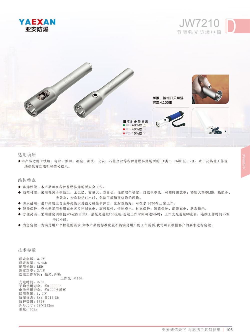 JW7302系列微型防爆電筒/消防員照明燈具